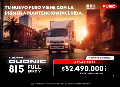 Canter 815 Euro V, media o larga distancia con la mayor versatilidad. Capacidad en cabina para tres pasajeros incluido el conductor. Concepto ergonométrico que brinda un mayor espacio para los ocupantes. Frenos de disco en las 4 ruedas con doble caliper (ABS + EBD) Freno de motor a los gases de escape. El mayor estándar de seguridad con doble Airbag conductor y pasajero (Opcional) Intervalo de mantenimiento: máximo cada 20.000 km, dependiendo del tipo de operación.***